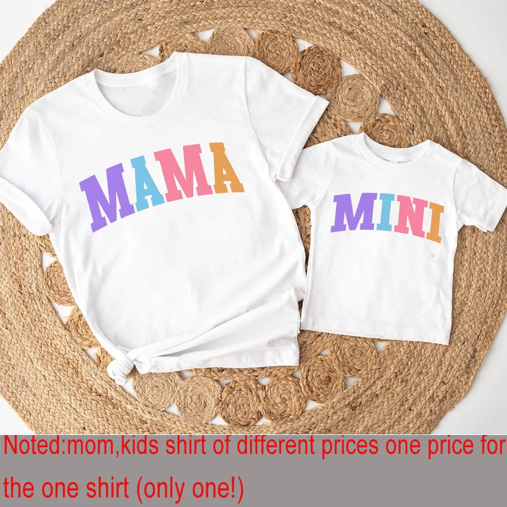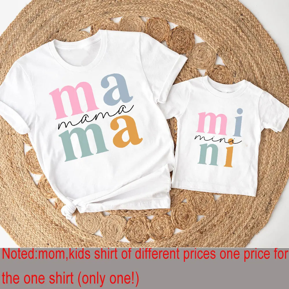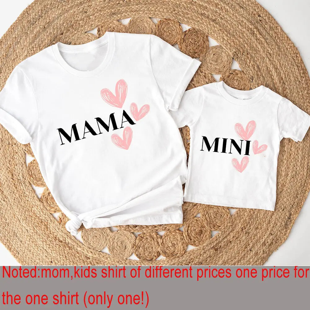 Leopard Heart Mama Mimi Print Family Matching Shirt Mother & Daughter Short Sleeve T-shirt Tops Mom Girl Fashion Looke Outfit
